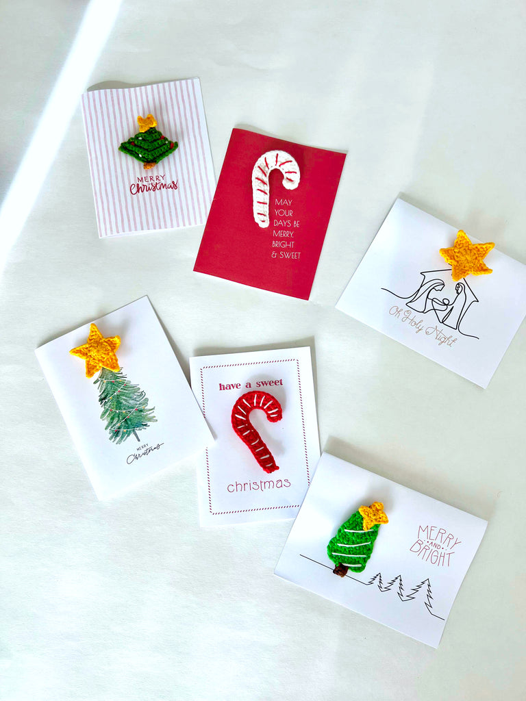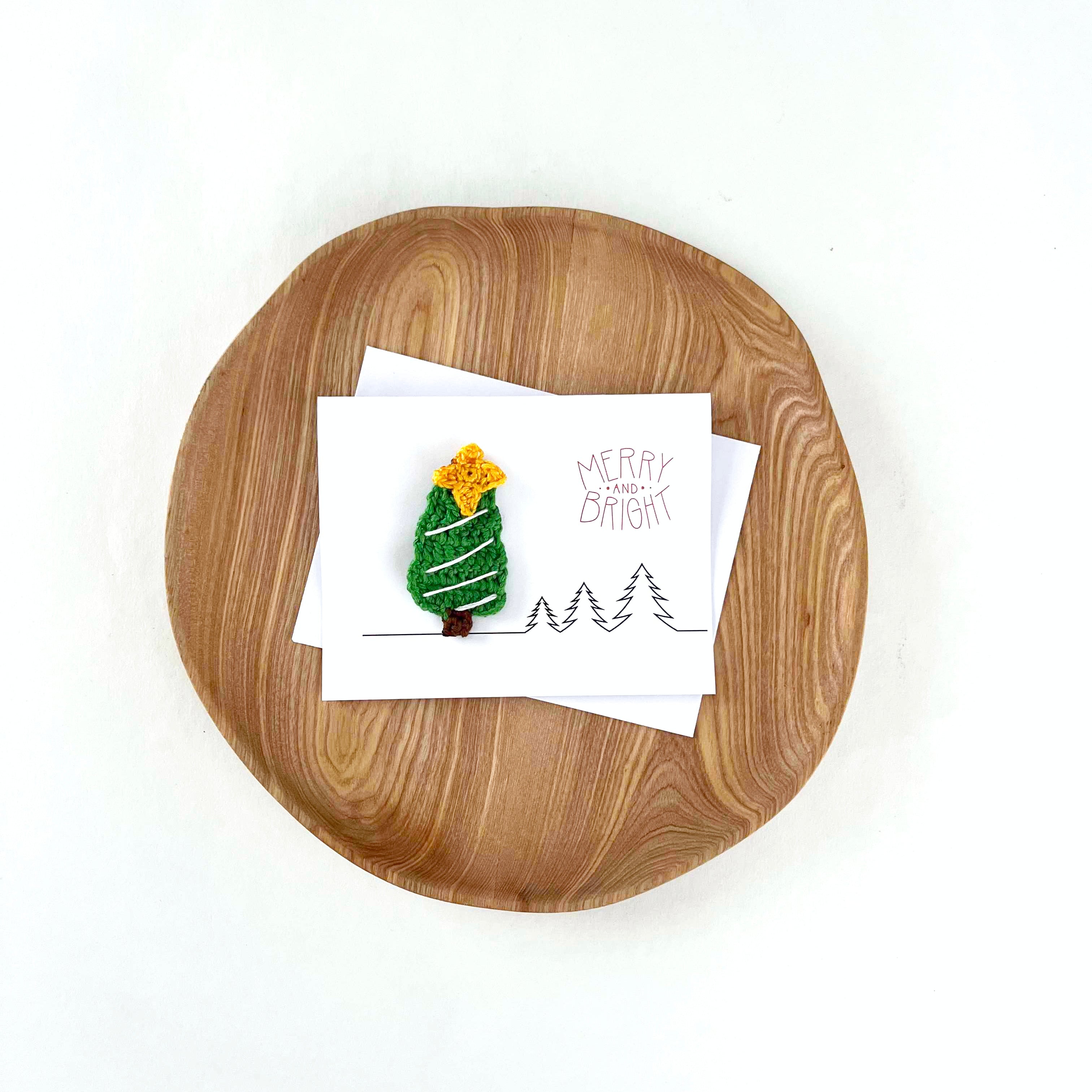 - Includes: Soft white envelope, Natural white cardstock, Hand-crocheted Pin