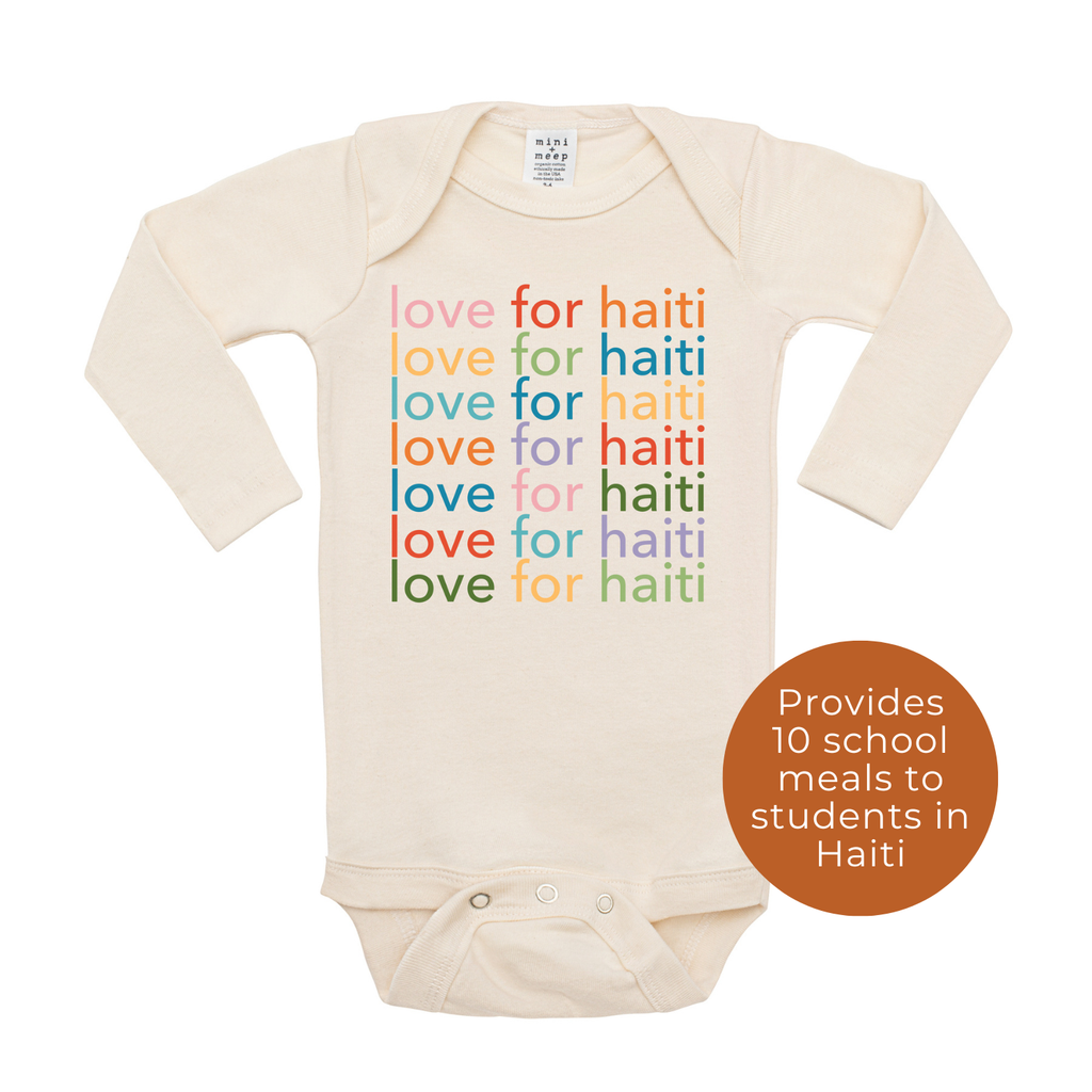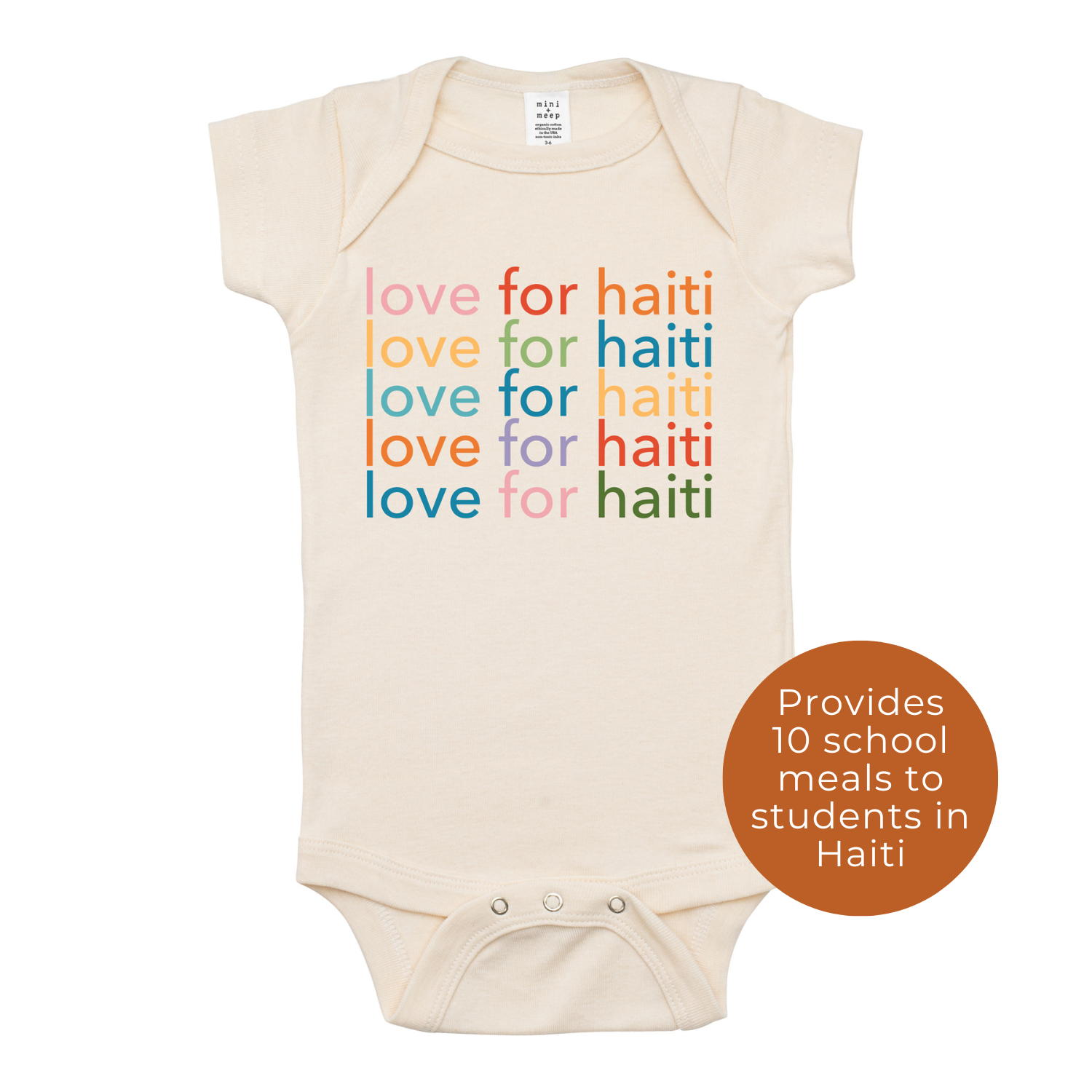 For the courageous hearts that love fearlessly! We are so excited to bring you our newest collaboration with mini + meep. Now you can show your love for Haiti with this fun and colorful design. Get your little one their onesie today and be a part of the change!